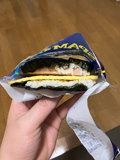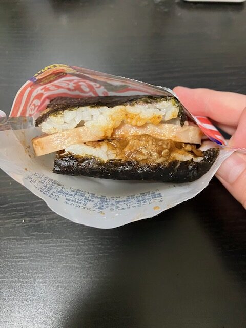 The combination of Spam and beef makes this onigiri very hearty for a convenience store onigiri. By the way, the BBQ sauce used is called “Yoshida Sauce”. I guess they sell Yoshida sauce in the U.S. The BBQ is spicy and tasty, perhaps because of the flavor of the Yoshida sauce itself. This one was 300 yen.