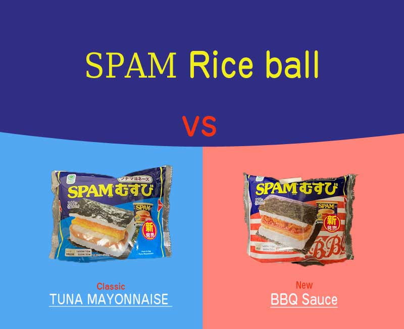 SPAM rice balls from Family Mart. Eating Comparison. Tuna Mayonnaise(ツナマヨ) vs. BBQ Sauce