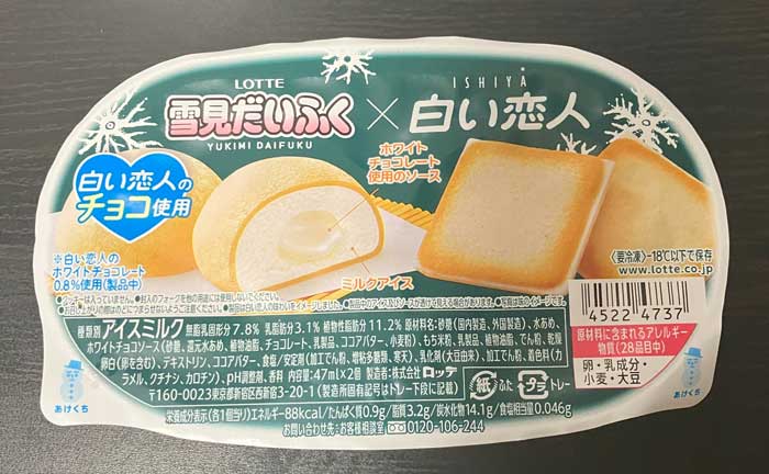 This time, the ice cream is a “Yukimi Daifuku” with white chocolate from “Shiroi Koibito” inside.