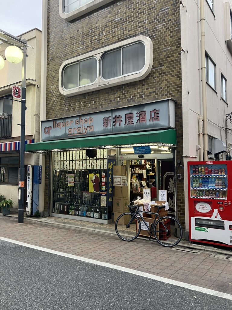 Finally, I would like to introduce my recommendation, “Araiya Saketen.” It is a liquor store located in the southern part of Nakajuku Shopping Street. If you pass by the shop, you will see that there are a wide variety of sake lined up. Sake from all over Japan is lined up. I think the labels of Japanese sake are one of the highlights for those who like kanji overseas.