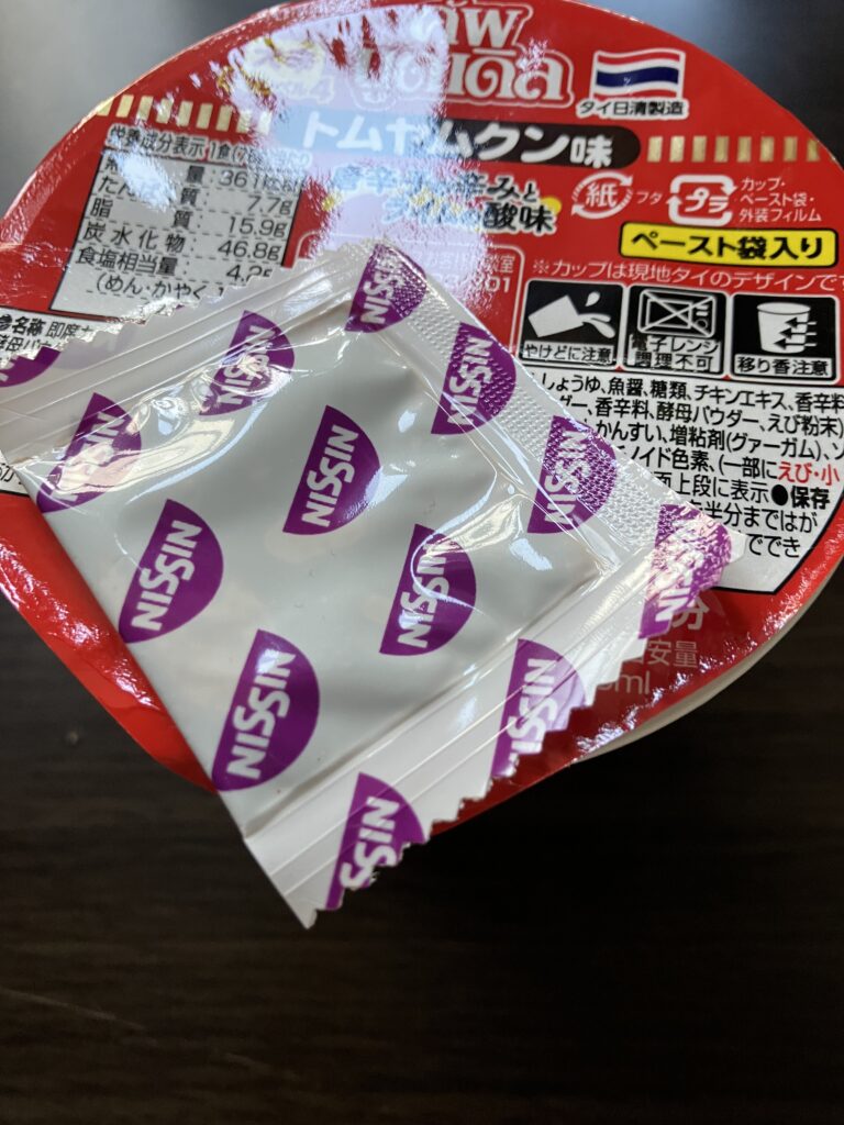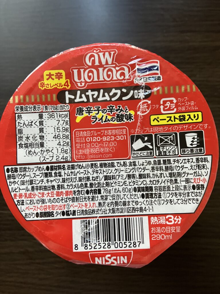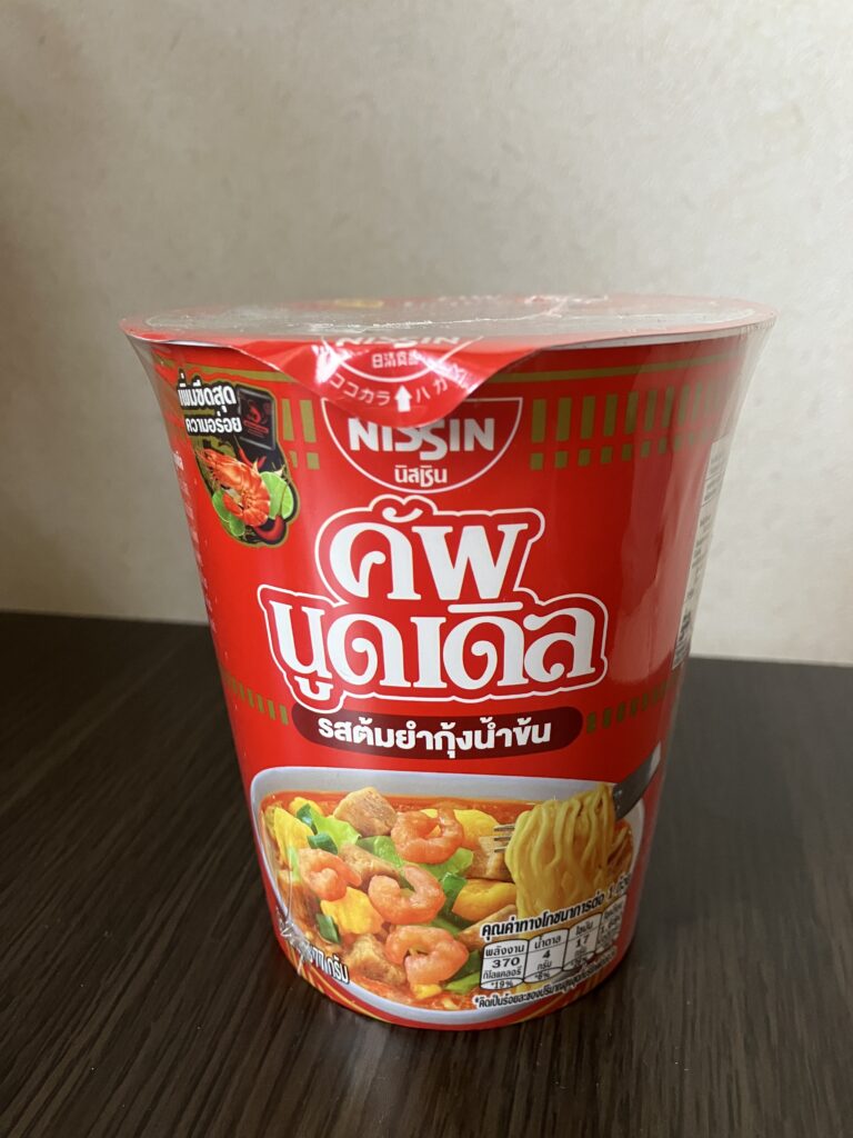 When I looked at the lid, I finally found some Japanese words. This instant ramen was manufactured in a factory in Thailand, and the reason all the cups were in Thai was because the local design was used as is. It seems that the products sold locally were imported to Japan.