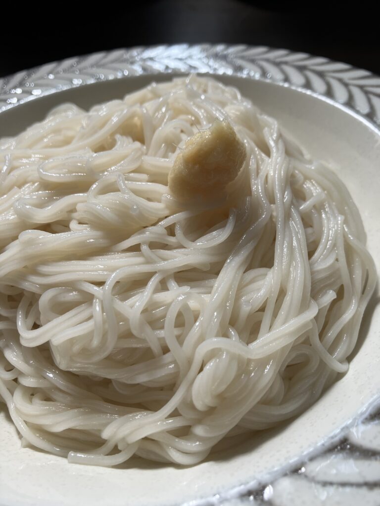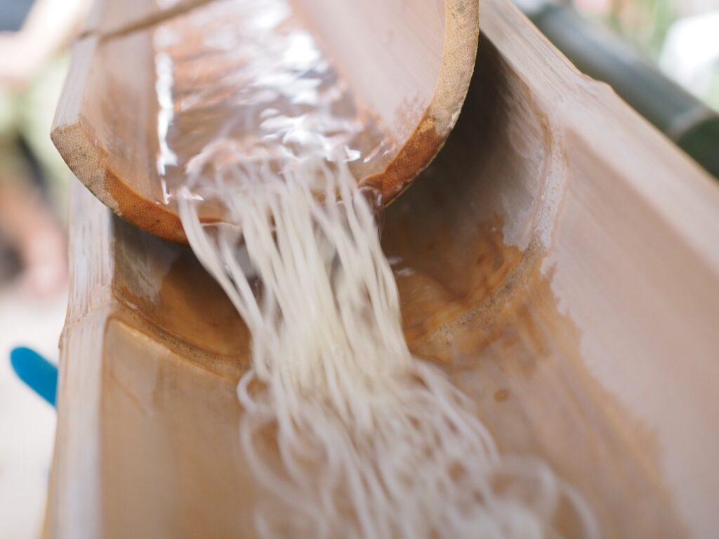 Somen is something you eat at home, not at a restaurant. Therefore, travelers in Japan may not have many chances to eat it. I searched and found that there are a few stores that serve it. One thing I remembered while writing this blog. In Japan, there is Nagashi Somen! I wonder how this would be for people overseas… They make a slide out of bamboo and pour somen from the top and the people below catch and eat it.