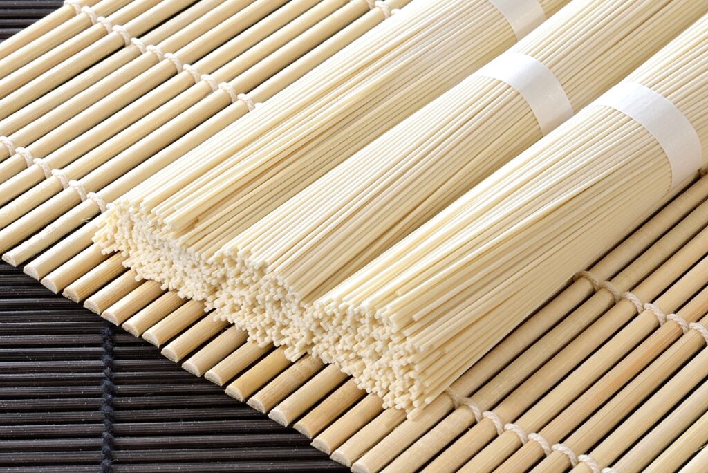 It is sold in stores as dried noodles as shown in the picture. It is a food made from wheat flour. It is very thin compared to other noodles such as ramen and udon. Cooking is simply boiling in boiling water. This time the product is ready in 2 minutes.