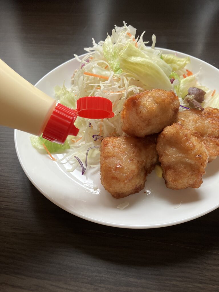 I used to play sports when I was a student. I remember being hungry after practice and eating a set meal with my allowance. My friends and I ordered the “Karaage Teishoku”. I am sure there are many Japanese who had the same experience. Karaage Teishoku is such a thing for Japanese people. Yes, for some reason, the brand Kewpie mayonnaise is remembered in our hearts and minds when it comes to karaage.