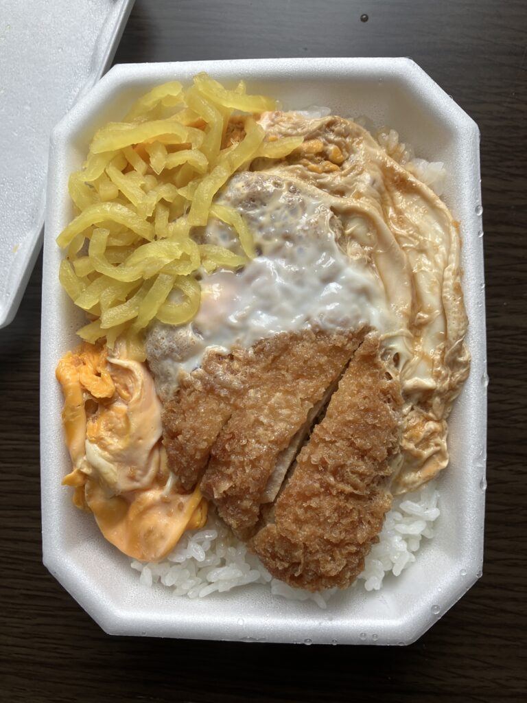 Well, today, I bought a lunch box for lunch and I would like to introduce it to you. Bento restaurants offer a wide variety of dishes such as fried chicken, hamburgers, tonkatsu, curry, and rice bowls. All of them are high-calorie meals, so I worry about my health if I eat them every day, but they are really good for an occasional change of pace. This time. I ordered a bowl of katsu don and will introduce it to you.