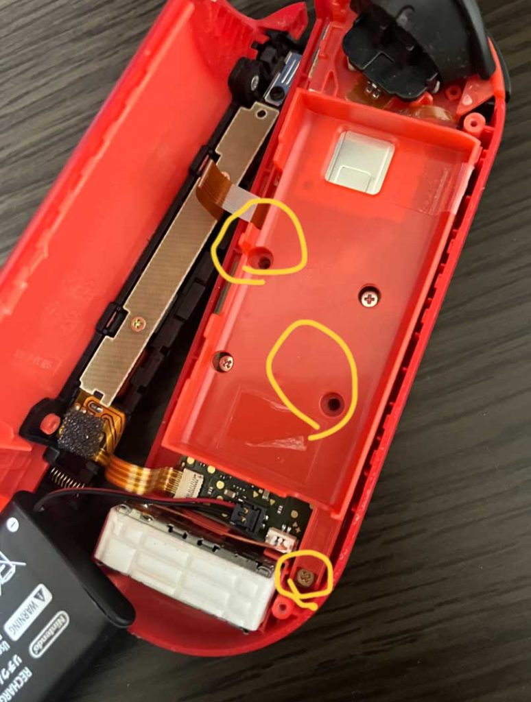 Then, I removed the yellow circle screw and replaced it with a new part.