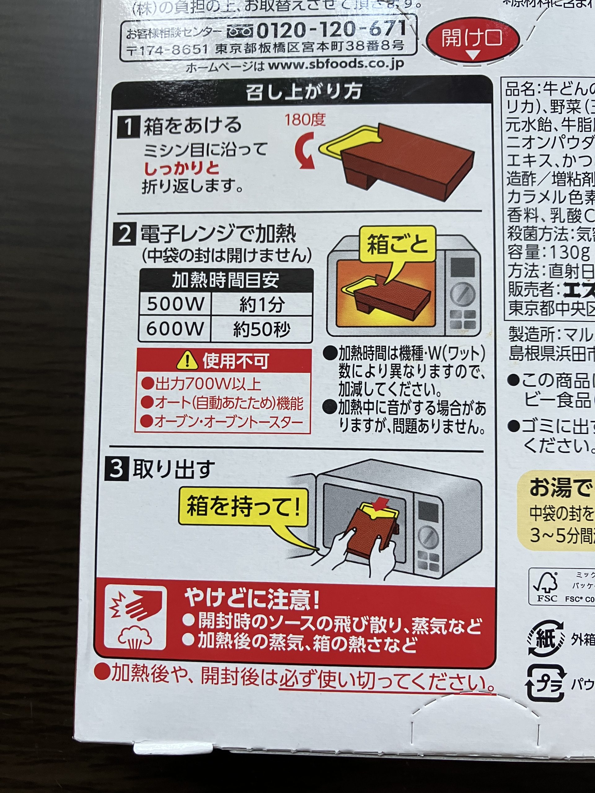 The instructions are in Japanese, but the illustrations make it easy to follow. The box itself serves as a heating stand for the microwave. Open the box, reverse the lid (rotate it 180°), and heat it in a microwave for about 50 seconds at 600W.
