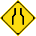 Road narrows on both sides